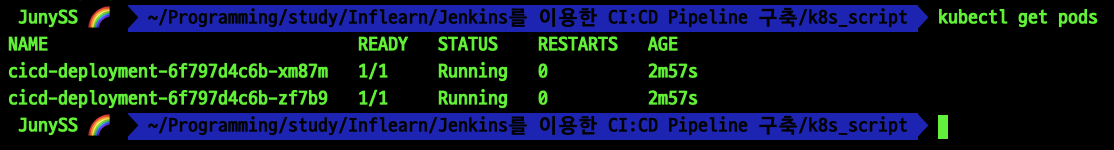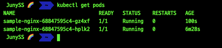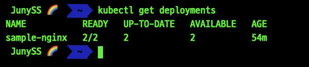 Minikube๊ฐ ์ค์น๋ Mac Book์์ ํ์ธํด๋ณด๋ ์์ ๊ฐ์ด Pod์ Deployment๊ฐ ๋ง๋ค์ด์ง ๊ฒ์ ํ์ธํ ์ ์์ด์.