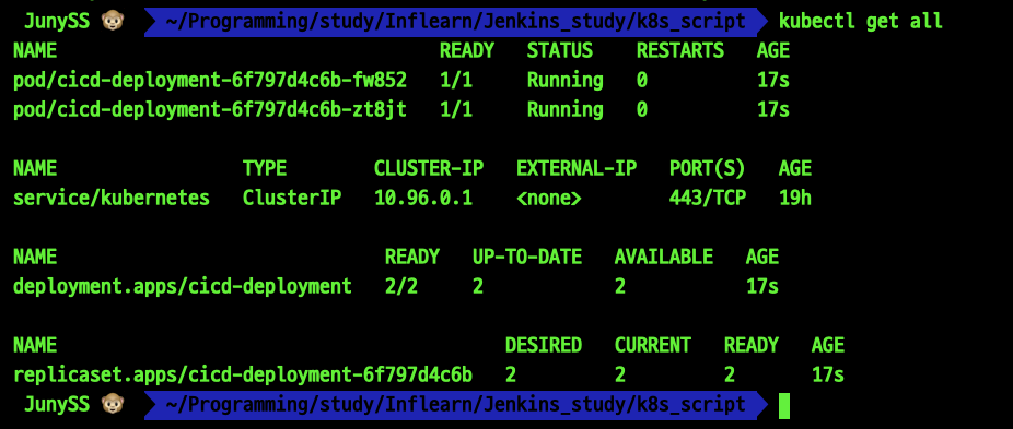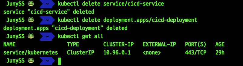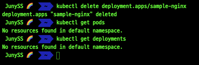 ํ์ฌ ์ฃผ๋ํ๋ Mac Book์์ ๊ธฐ๋์ค์ธ pod์ deployment๋ฅผ ํ์ธํด ์ฃผ์๊ณ , ๋ชจ๋ ์ญ์ ๋ฅผ ํด ์ฃผ์์ด์.