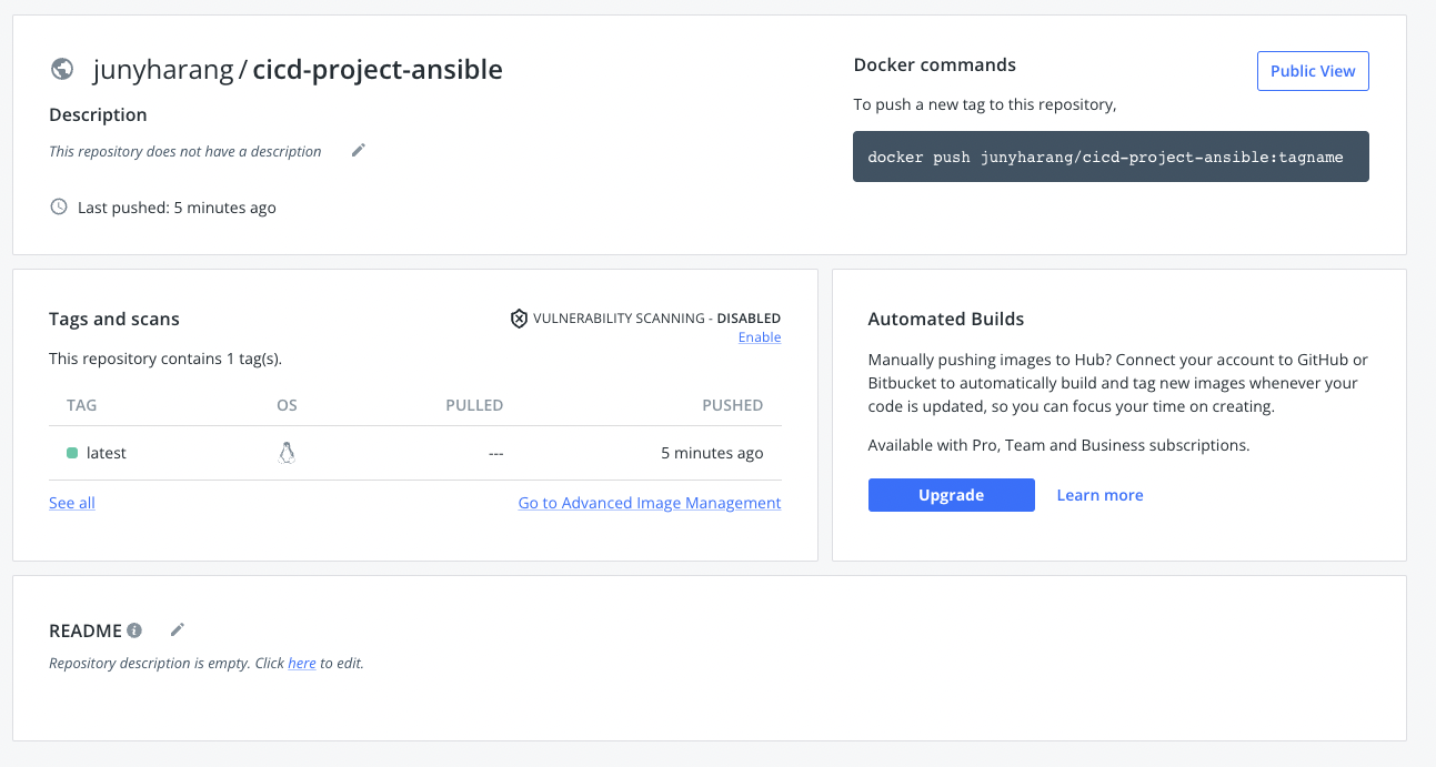 Docker Hub์๋ ์ ์์ ์ผ๋ก Update ๋ ๊ฒ์ ํ์ธํ ์ ์์ด์.
