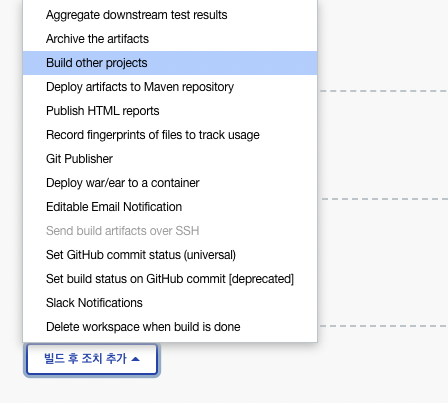 Jenkins์ Item ์ค์ ์์ '๋น๋ ํ ์กฐ์น ์ถ๊ฐ' Button์ ๋๋ฌ์ฃผ์ธ์.
