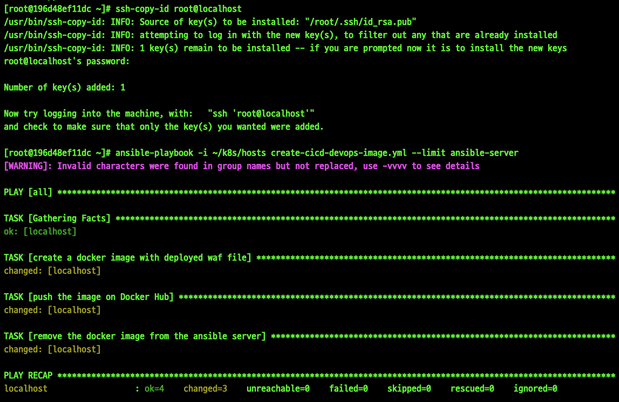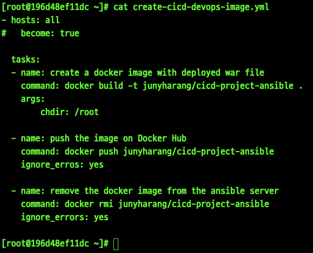์์ ํ ๋ถ๋ถ์ Exec command ๋ถ๋ถ์ธ๋ฐ, image๋ฅผ ๋ง๋๋ Script๋ฅผ ์คํ๋๊ฒ ํ๊ณ , ์ค์ง Ansible Server์์๋ง ์๋๋๊ฒ ๋ช