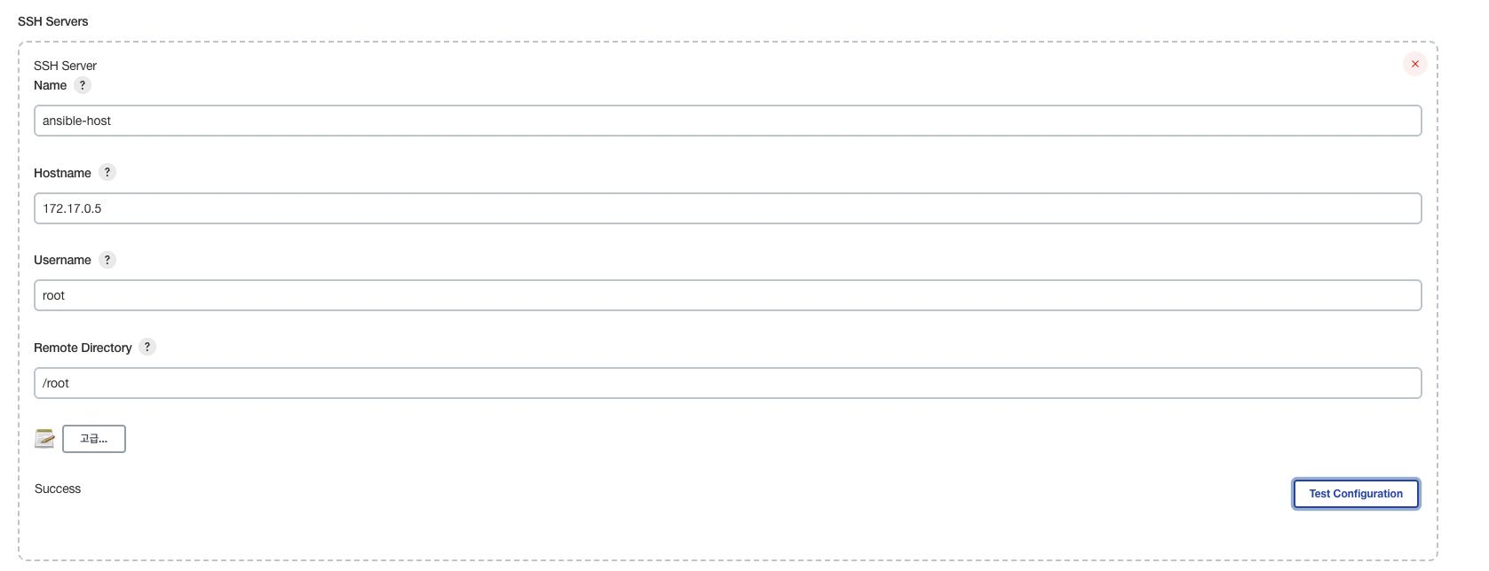 ๋ ฅํด ์ฃผ๊ณ , Test Configuration Button์ ๋๋ฌ Success๊ฐ ๋จ๋์ง ํ์ธํด ์ค๋๋ค.