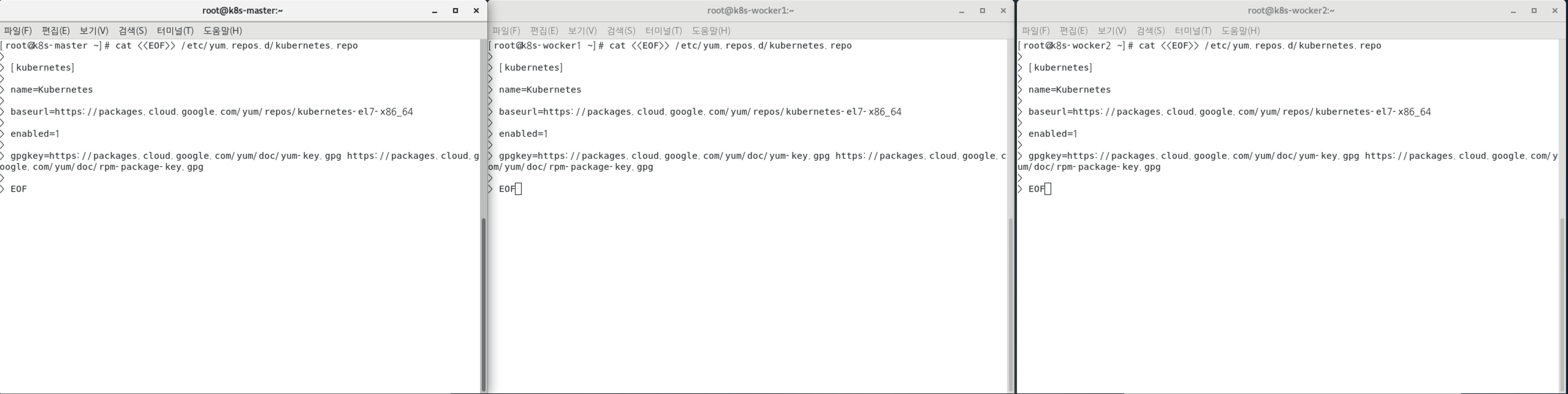 cat <<EOF>> /etc/yum.repos.d/kubernetes.repo