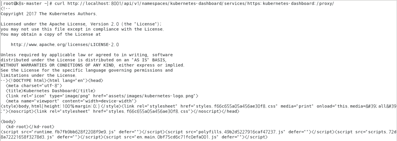 ์์ curl์ kube-proxy๋ฅผ ํตํด API Server๋ก https:kubernetes-dashboard: ์์ฒญ์ ๋ณด๋ด Html ์๋ต์ ๋ฐํํด ์ค ๊ฒ์ด์์.
