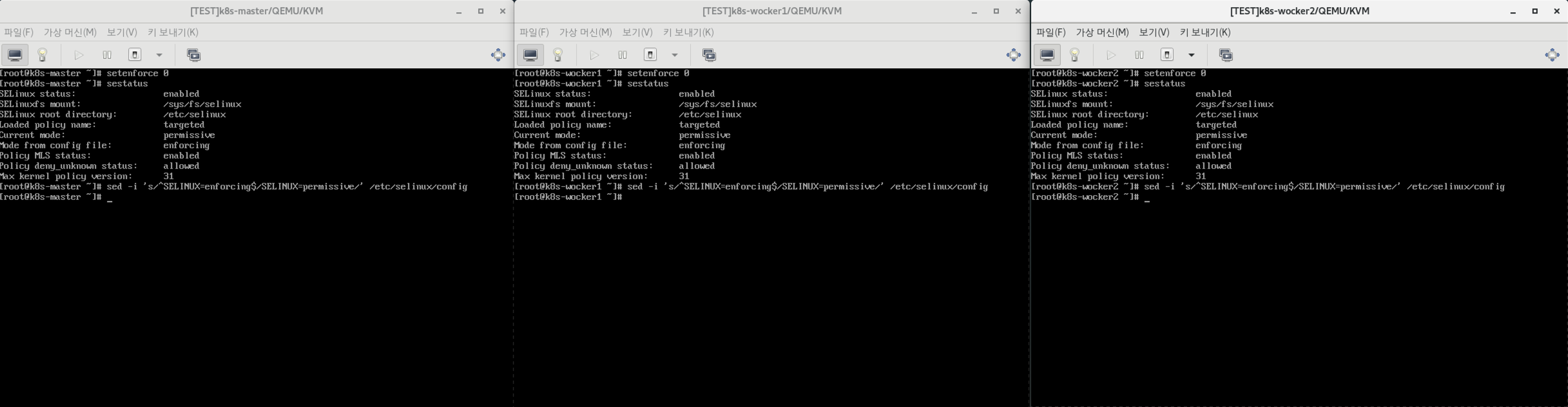 ์ต์ด ์์ ๊ฐ์ด SELinux๊ฐ ํ์ฑํ ๋์ด ์๋์ง ํ์ธํ๊ณ , ๋ด๋ ค์ฃผ์ด์ผ ํด์.