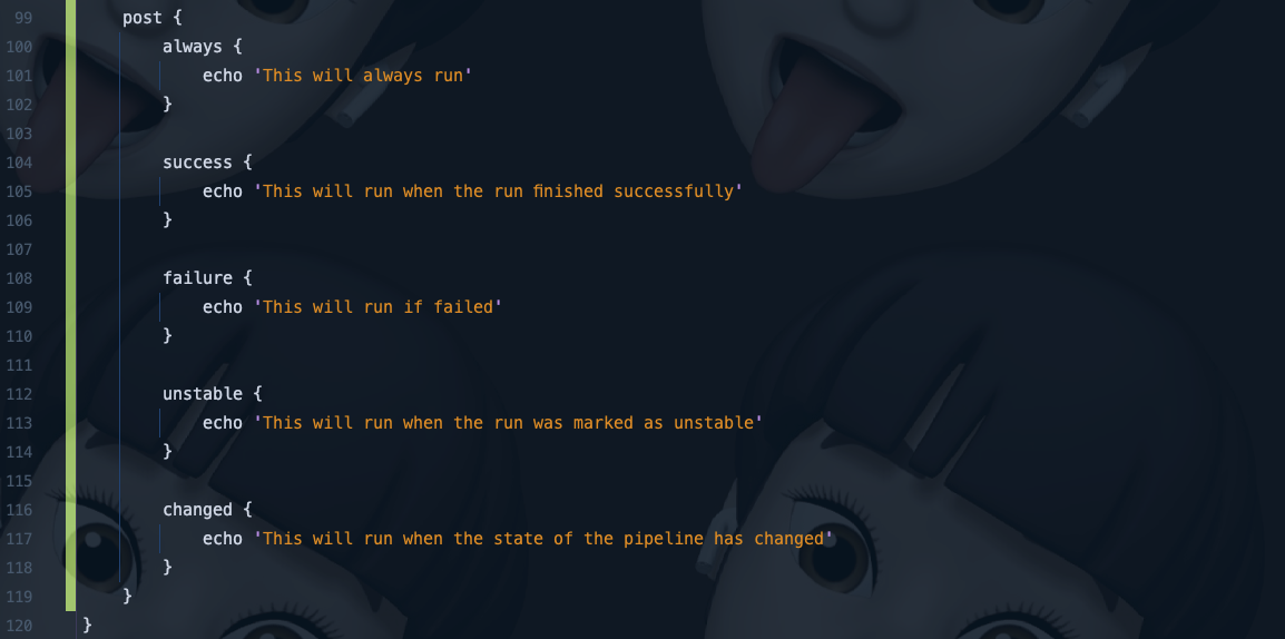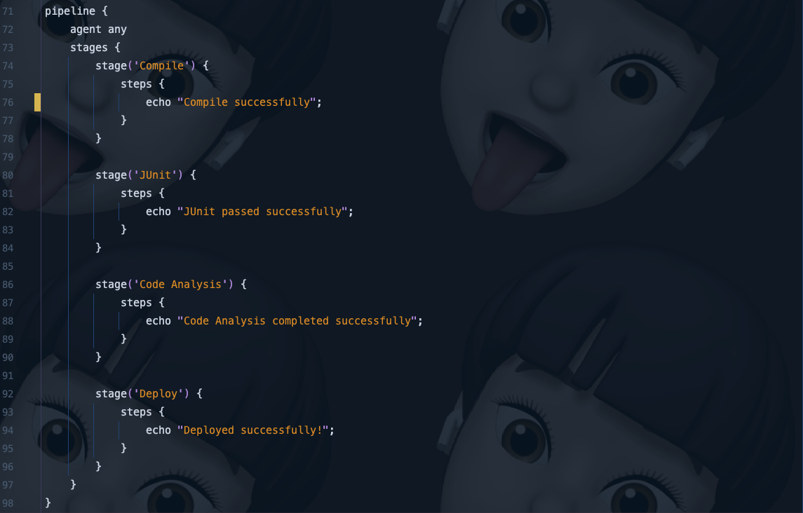 ์์ ๊ฐ์ด Jenkinsfile์ ๋ง๋ค์๊ณ , ๊ฐ๋จํ๊ฒ ๊ฐ ๋จ๊ณ๋ณ๋ก ๋ฌธ์์ด์ ์ถ๋ ฅํ๋๋ก ๋ง๋ค์ด ์ฃผ์์ด์.