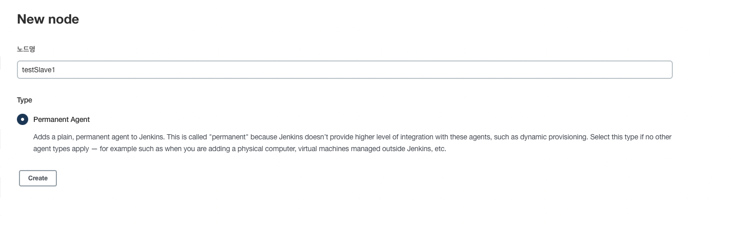 Jenkins ๊ด๋ฆฌ -> Manage Nodes -> New Node