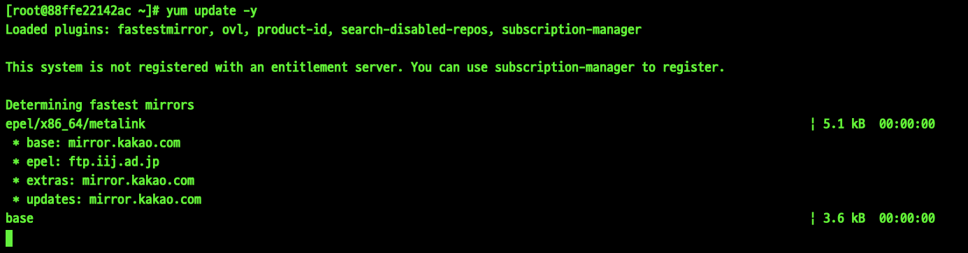 ํด๋น ์์ ์ Docker๋ฅผ ์ด์ฉํ์ฌ CentOS 7 Container๋ฅผ ์ด์ฉํ์ฌ ์งํํ๊ณ ์์ต๋๋ค.