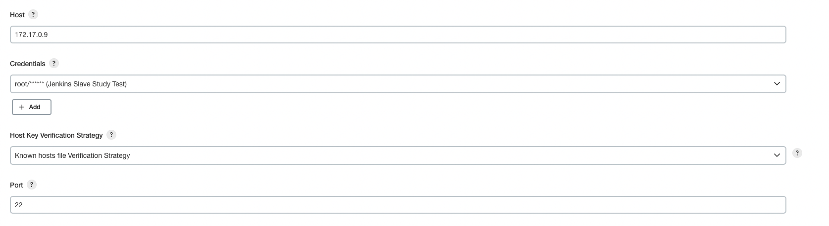 7. Launch Method : Launch agents via SSHโ Host : {Slave Server IP} ์์:) 192.168.0.5