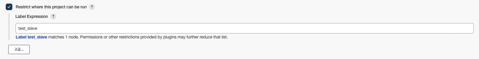 이렇게 해주면 이 전에 만들었던 Slave Server에다가만 해당 Project의 Build 작업을 위임하겠다는 것이에요.
