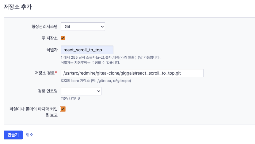 ์ฒซ์งธ: redmine์์ ์ ์ฅ์ ์์น๋ฅผ ์ ๋ชป ์์ฑํ ๊ฒฝ์ฐ
