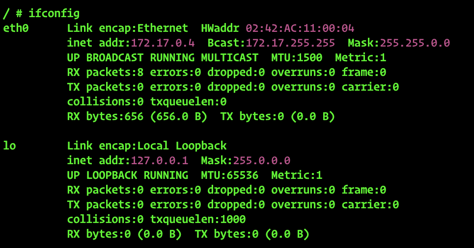Container ๋ด๋ถ IP๊ฐ ์์ ๊ฐ์ด ์ค์ ๋ ์๋ ๊ฑธ ํ์ธํ์์ด์.