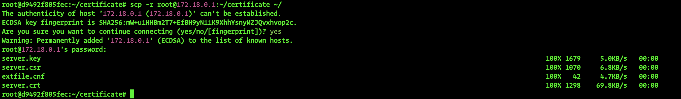 -v {์ธ์ฆ์ ๋ง๋ Sever์ ์ธ์ฆ์ Directory Path}:{Container ๋ด๋ถ ์ธ์ฆ์ ๋ณด๊ดํ Directory} \