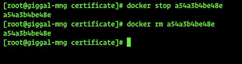 ๋ น์ด๋ฅผ ํตํด Container๋ฅผ ์ค์งํ๊ณ , ์ญ์ ํด ์ฃผ์ธ์.