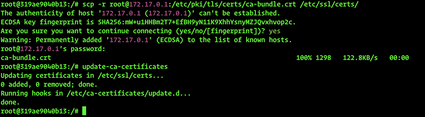 * subjectAltName: host "172.17.0.2" matched cert's IP address!