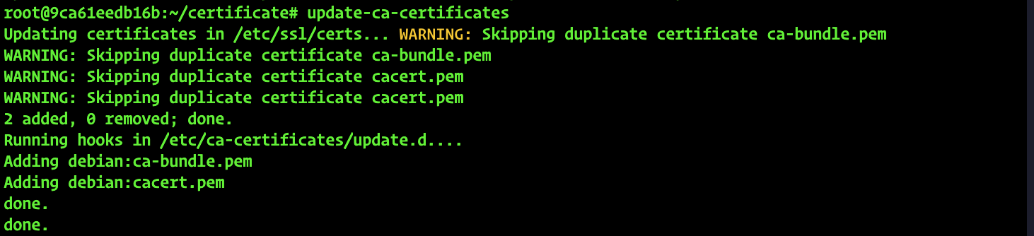 Debian ๊ณ์ด์ ๊ฒฝ์ฐ ์์ ๊ฐ์ด ์ธ์ฆ์๋ฅผ ๋ฑ๋กํด ์ฃผ์ด์ผ ํด์.