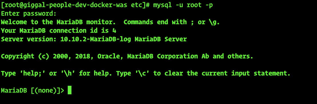 MariaDB์ root ๊ณ์ ์ผ๋ก ์ ์์ ํด ์ฃผ์์ด์.