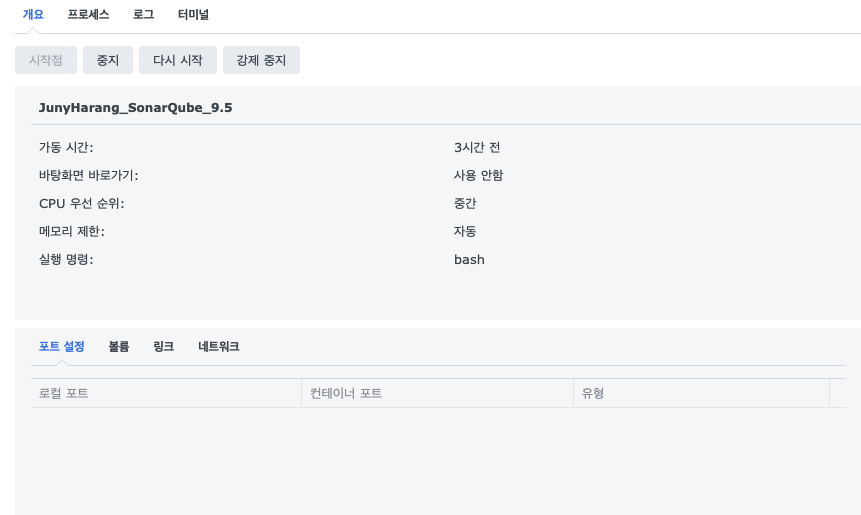 ์ฃผ๋ํ๋์ ํ์ฌ Synology Docker๋ฅผ ํตํด Ubuntu 22.04๋ฅผ ์ฌ๋ฆฌ๊ณ , ๊ทธ ์์ SonarQube๋ฅผ ์ฌ๋ฆฌ๊ณ ์์ด์.