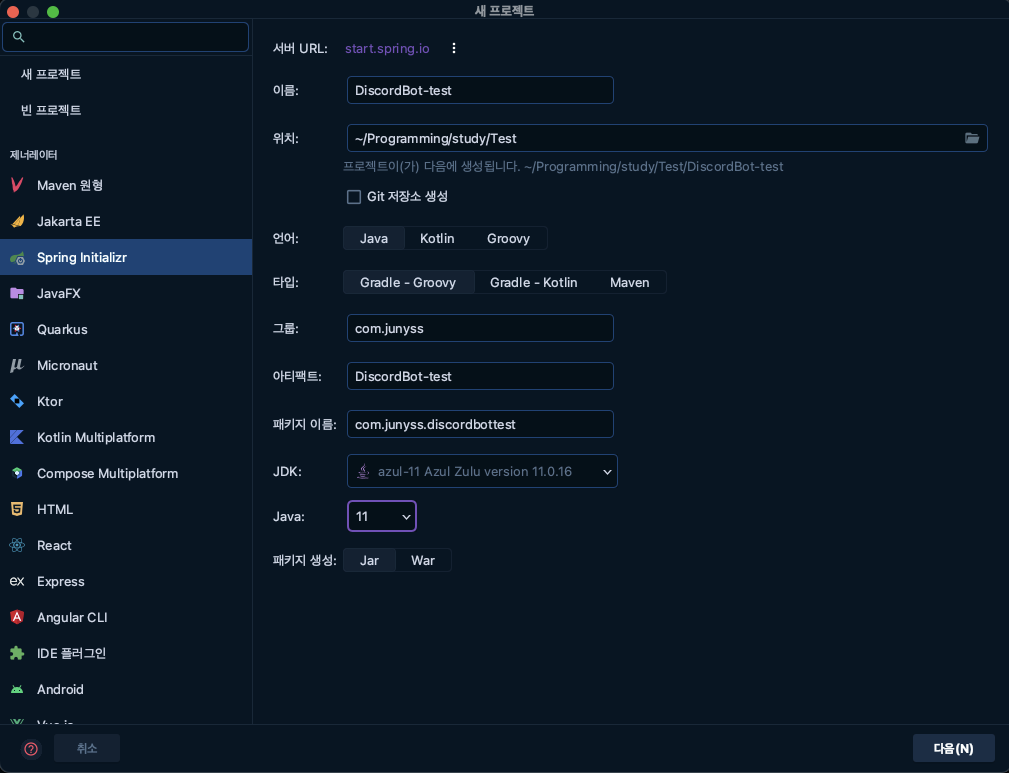 1. [Spring Boot] Discord Bot(๋์ค์ฝ๋ ๋ด) ๋ง๋ค๊ธฐ