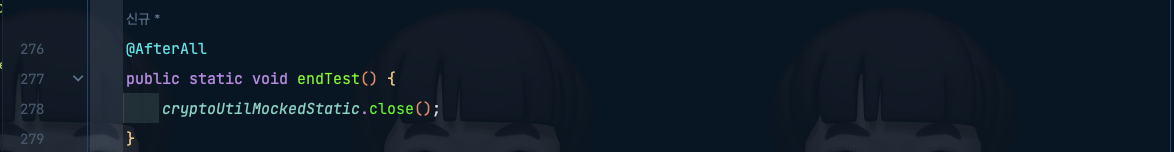 ๋ง์ง๋ง์ผ๋ก ์์ ๊ฐ์ด Test๊ฐ ๋๋๋ฉด mockStatic์ด ๋ซํ ์ ์๋๋ก ์ฒ๋ฆฌํด ์ค์ผ ํด์.