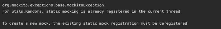 ๊ทธ๋ ์ง ์์ผ๋ฉด ํ Thread์์ staticMocking ๋ฑ๋ก์ ํ๋ฒ ๋ฐ์ ํ ์ ์์ด ๋๋ฌธ์ ์๋์ ๊ฐ์ ๋ฌธ์ ๋ฅผ ๋ง๋๊ฒ ๋ ๊ฑฐ์์.