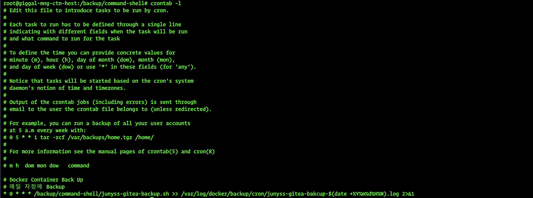 ์ ์์ ํฉ๋๋ค." >> /var/log/docker/backup/command/junyss-gitea-backup.log 2>&1