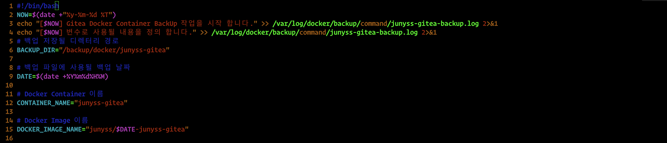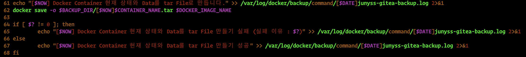 ์ ์์ ํฉ๋๋ค." >> /var/log/docker/backup/command/[$DATE]junyss-gitea-backup.log 2>&1