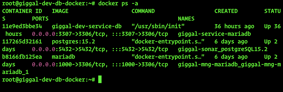 ์ฃผ๋๋ ์ด๋ฒ์ giggal-sonar_postgreSQL15.2์ giggal-mng-mariadb ์ฎ๊ธฐ๋ ์์