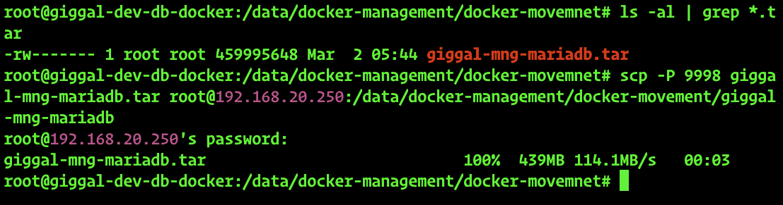 ์์ ๊ฐ์ด ์ฎ๊ธฐ๊ณ ์ ํ๋ Server์ tar File์ด ์ ์ ๋ฌ๋ ๊ฑธ ํ์ธํ ์ ์์ด์.