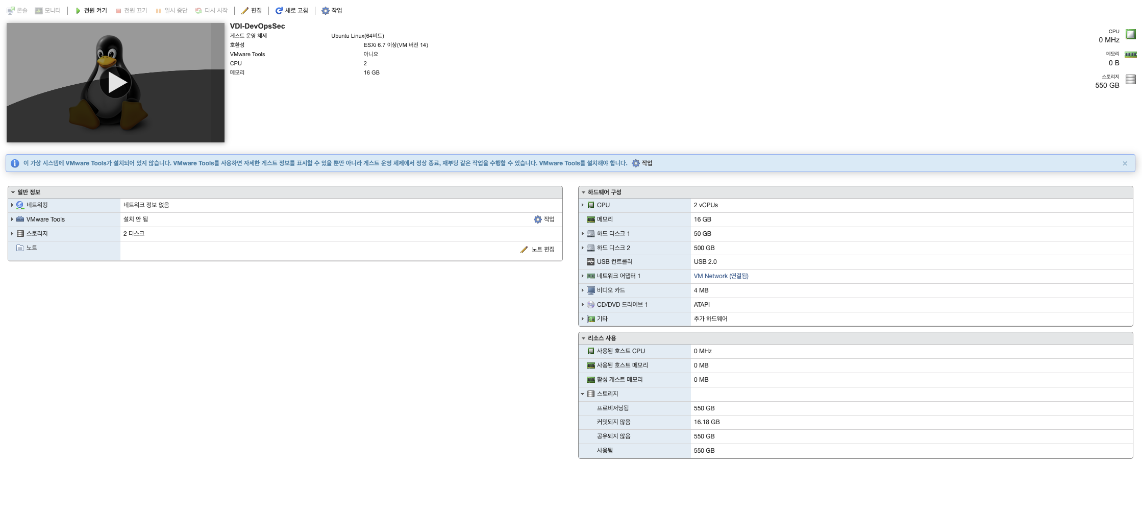 ๋ฉ๋ชจ๋ฆฌ๋ 16GB๋ฅผ ํ ๋นํด ์ค ๊ฒ์ด๊ณ , ํ๋ ๋์คํฌ 1์ ์์์
