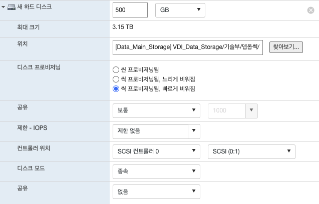 ์ฃผ๋์ฐ์ฒ๋ผ 500GB๋ฅผ ํ ๋นํ์ ๋๋ฅผ ๊ฐ์ ํด ๋ณผ๊ฑฐ์์.
