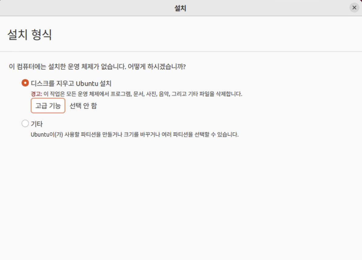 ๊ทธ๋ฐ ๋ค Ubuntu ์ค์น๋ฅผ ๋๋ฌ์ค๊ฒ์.