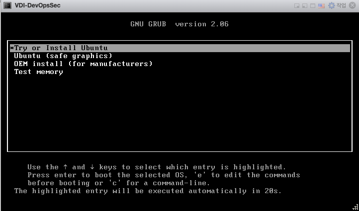 ์ต์ด ์ค์น์ฉ ISO๋ฅผ ๊ฐ์ํ ํ๋ก๊ทธ๋จ์ด ์ธ์ํ๊ฒ ํ ๋ค ์์ ๊ฐ์ด Try or Install Ubuntu๋ฅผ ์ ํํ๊ณ , Enter๋ฅผ ๋๋ฌ์ค๊ฒ์.