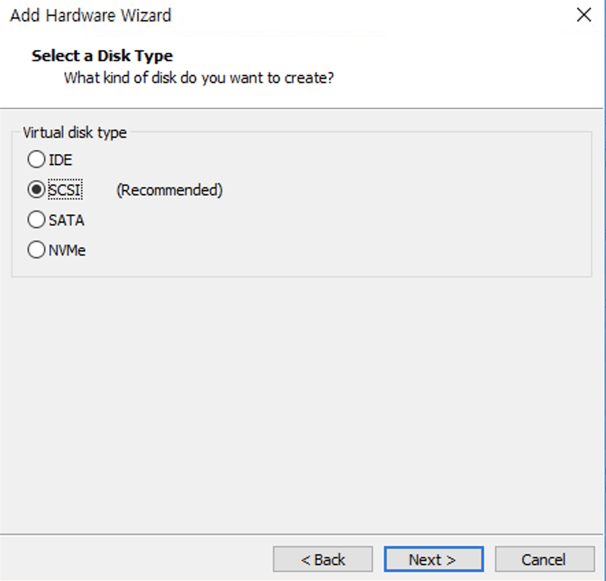 Disk Type์ SCSI๋ก ์ ํํด ์ค๊ฑฐ์์.