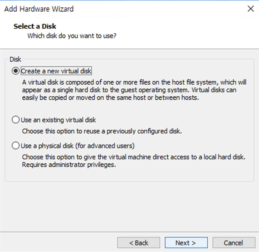 ์๋ก์ด ๊ฐ์ ๋์คํฌ๋ฅผ ์์ฑํ ๊ฒ์ธ์ง ๋ฌผ๋ฆฌ์ ์ธ ๋์คํฌ๋ฅผ ์์ฑํ ๊ฒ์ธ์ง์ ๋ํด ์ ํํ๋ ๋ถ๋ถ์ด์์.