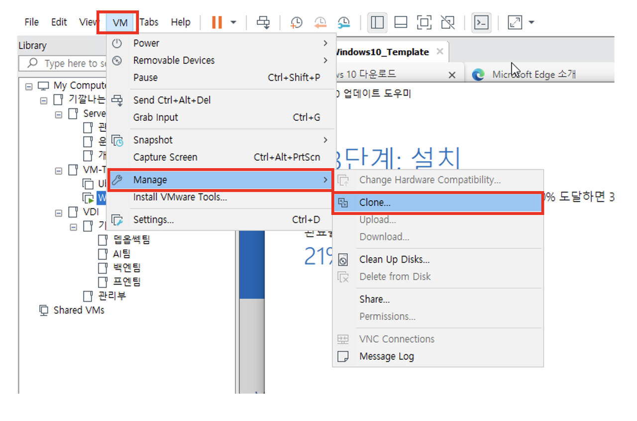 ์ฃผ๋์ฐ๋ Create a Full Clone์ ํตํด ๋ณต์ ๋ฅผ ํ ๊ฑฐ์์.