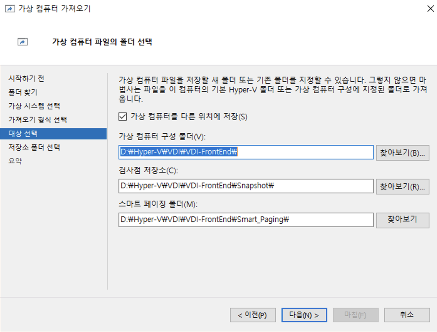 ์ ์ ํํ๊ณ , VM ๊ตฌ์ฑ ํด๋, ๊ฒ์ฌ์ ์ ์ฅ์, ํ์ด์ง ํด๋ ๋ฑ ์ํ๋ ์์น๋ฅผ ์ง์ ํด์ ์ ์ฅ์ ํ ์ ์์ด์.
