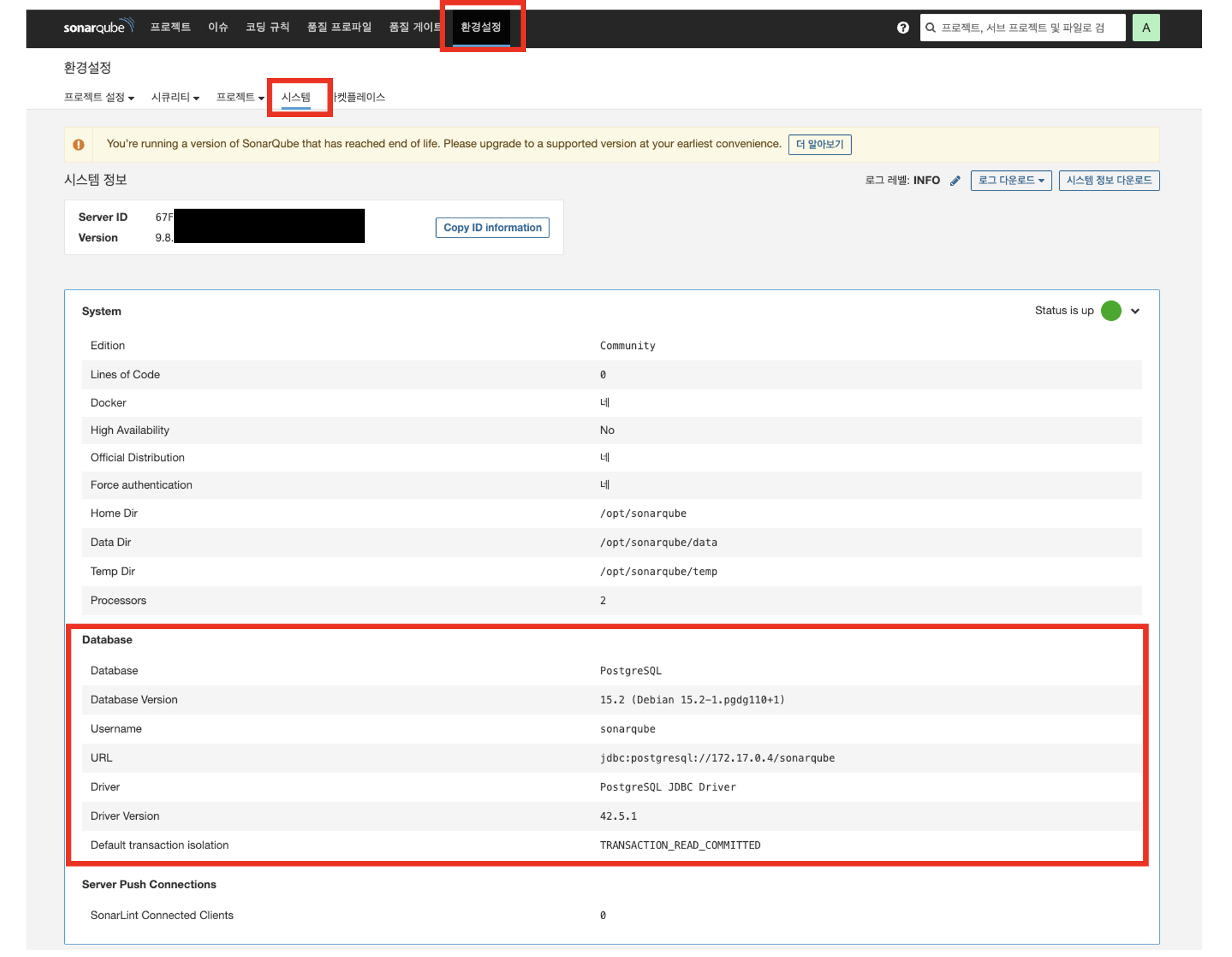 ๐ SonarQube 9.8 - PostgreSQL 15.2 ์ฐ๋ํ๊ธฐ