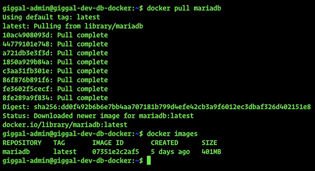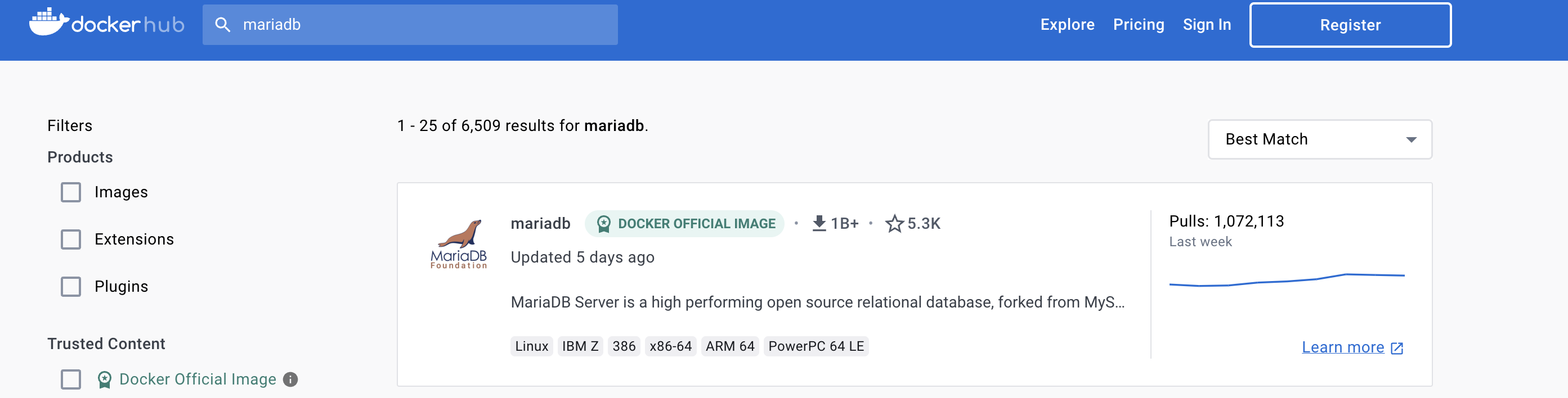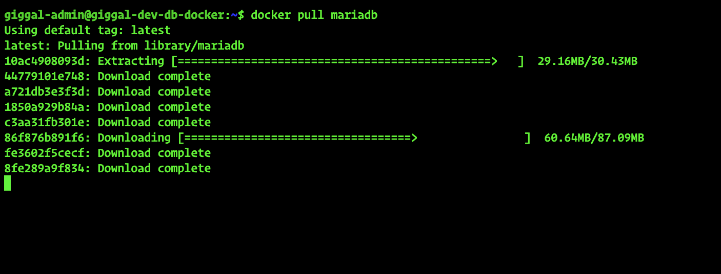 ๊ทธ๋ฐ ๋ค ์์ ๊ฐ์ด MariaDB Docker Image๋ฅผ ๋ด๋ ค ๋ฐ์ ์ค๋๋ค.