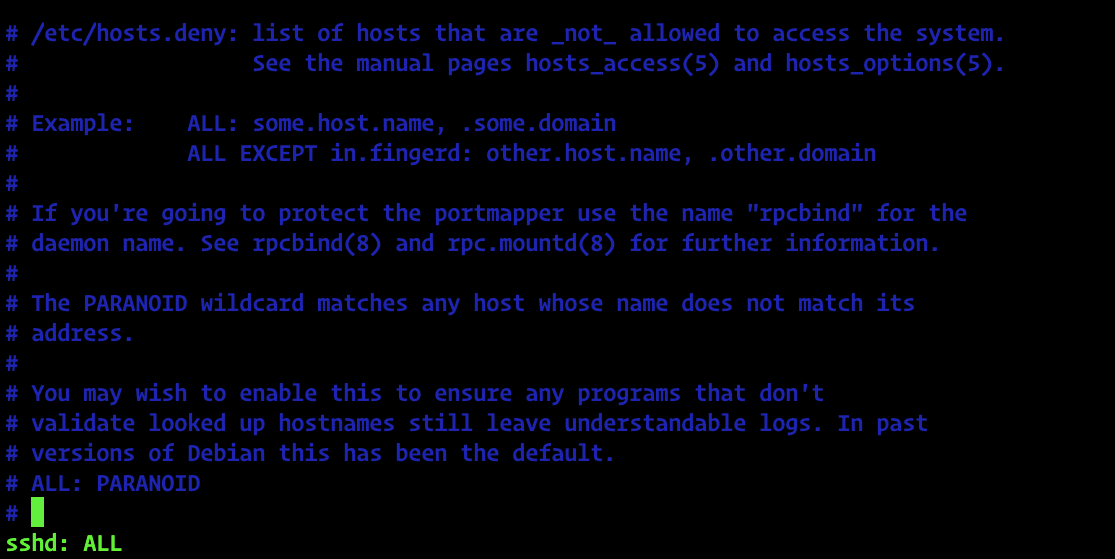 โ /etc/hosts.deny์ ์ ์ฑ ์ ์ถ๊ฐํ๋ฉด ์ฐจ๋จ ์ ์ฑ