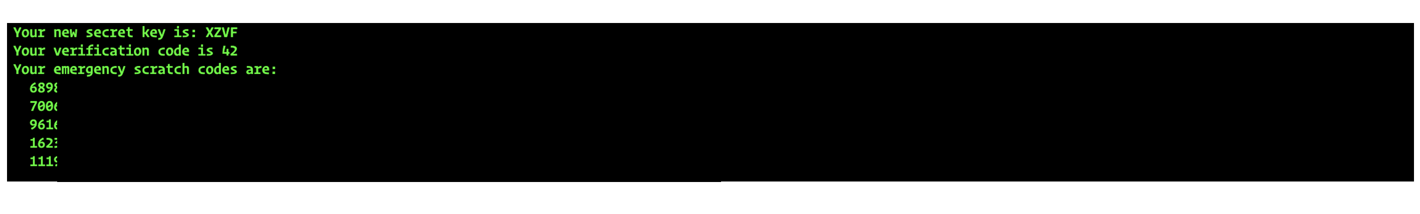 ๋ง์ง๋ง 5๋ผ์ธ์ emergency scratch code์์. ํด๋น ์ฝ๋๋ ์ฌ์ฉ๋ ๋๋ง๋ค ์ค์ ํ์ผ์์ ํด๋น ์ฝ๋๊ฐ ์ญ์ ๋๊ฒ ๋ผ์.