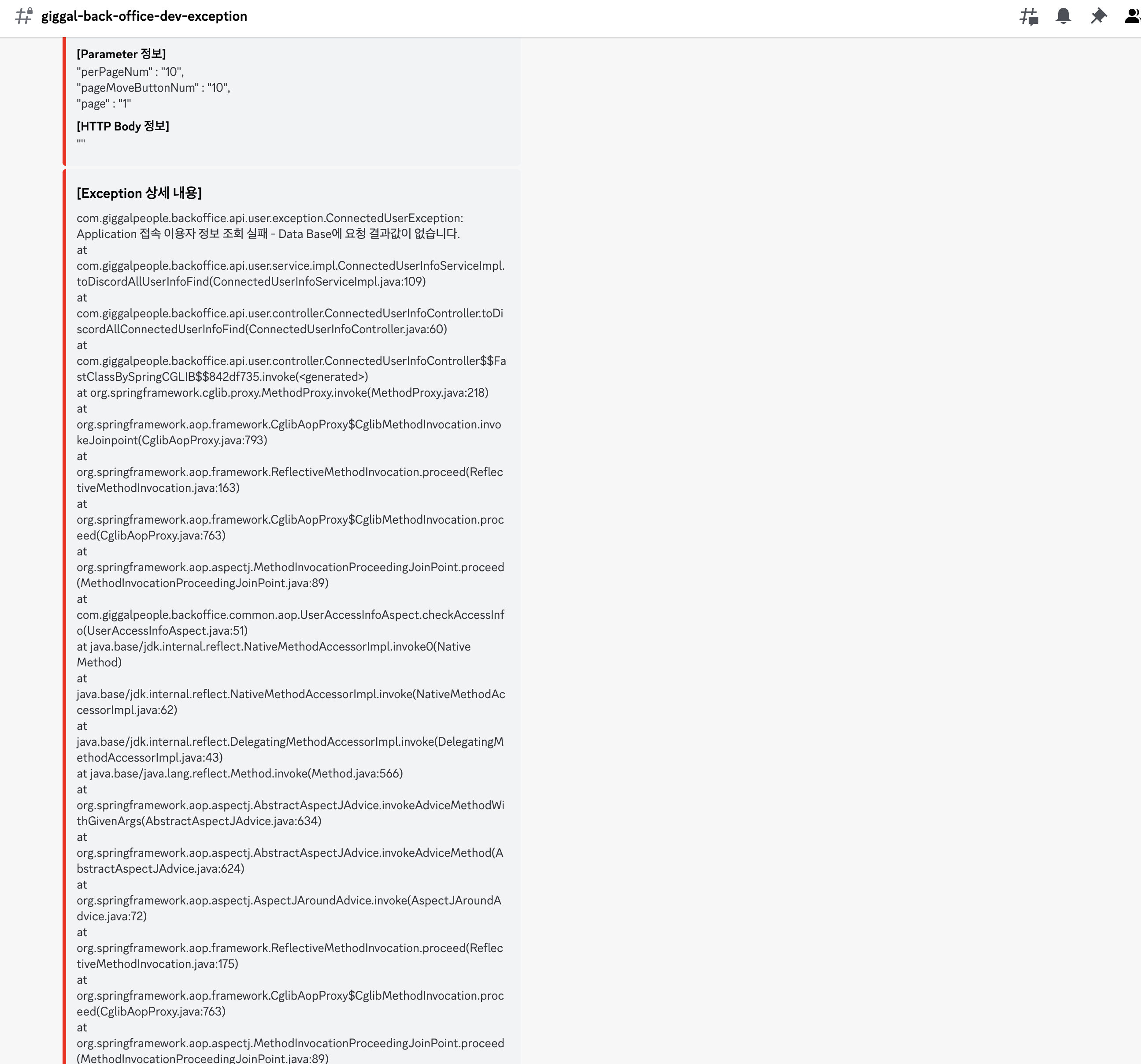 [Spring Boot][Total-Back-Office Project] Log Back์ ์ด์ฉํ Discord์ Exception ์ ๋ณด ๋ณด๋ด๊ธฐ ๋ฐ Data Base ์ ์ฅ feat.MyBatis & Test Code(JUnit 5) - โก ๋์ค์ฝ๋๋ก ๋ก๊ทธ ์ ๋ณด ๋ฐ์ก