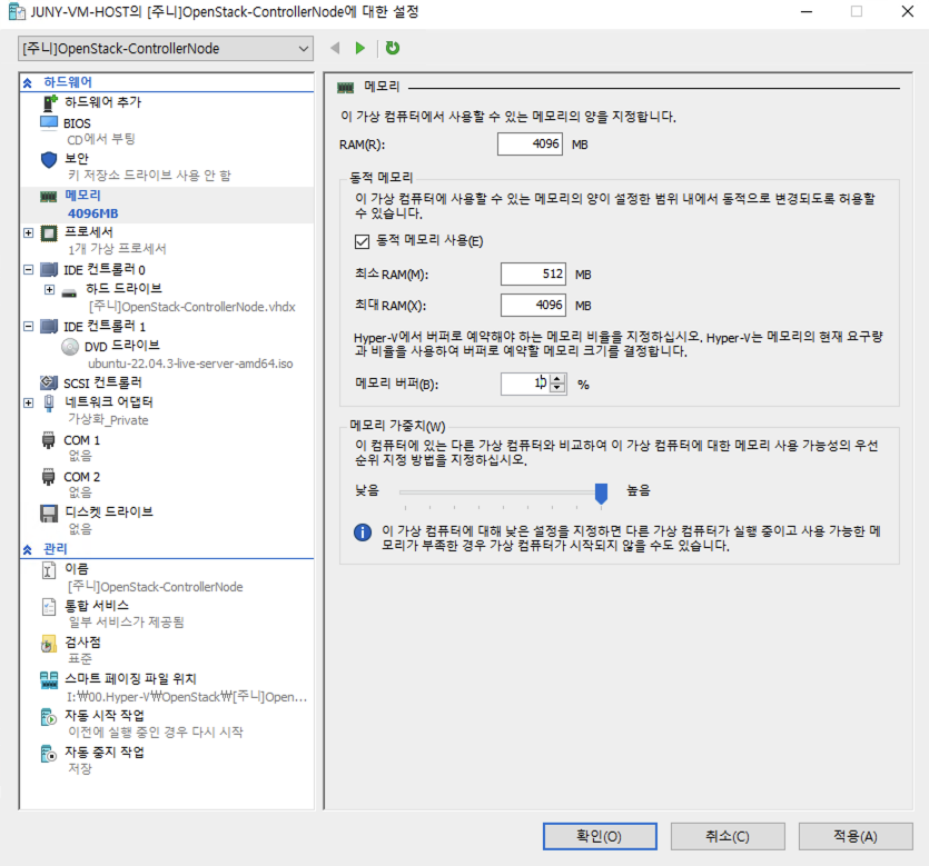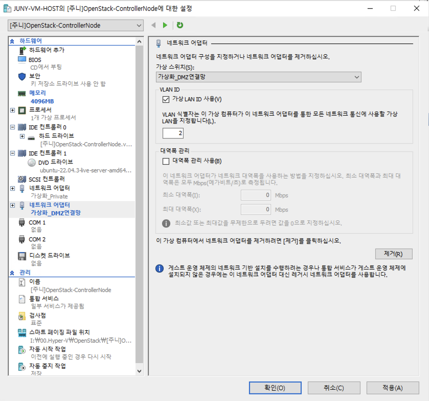 2. [Hyper-V] [Open Stack] [Controller Node] Hyper-V ๊ตฌ์ฑ ๋ฐ Ubuntu 22.04.3 LTS Server ์ค์น