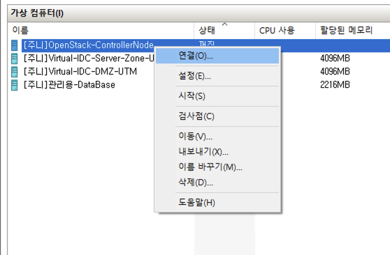 Console(์ฝ์)์ ์ด๊ธฐ ์ํด VM ์ด๋ฆ์ ์ฐํด๋ฆญ ํ๊ณ , ์ฐ๊ฒฐ์ ๋๋ฌ์ค๊ฒ์.