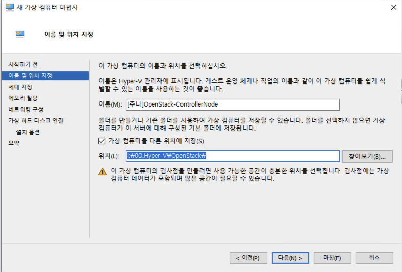 ๊ทธ๋ฐ ๋ค ์์ ๊ฐ์ด VM ์ด๋ฆ์ ์ ์ํ๊ณ , ํด๋น VM์ด ์ ์ฅ๋ ์์น๋ฅผ ์ง์ ํด ์ฃผ์์ด์.