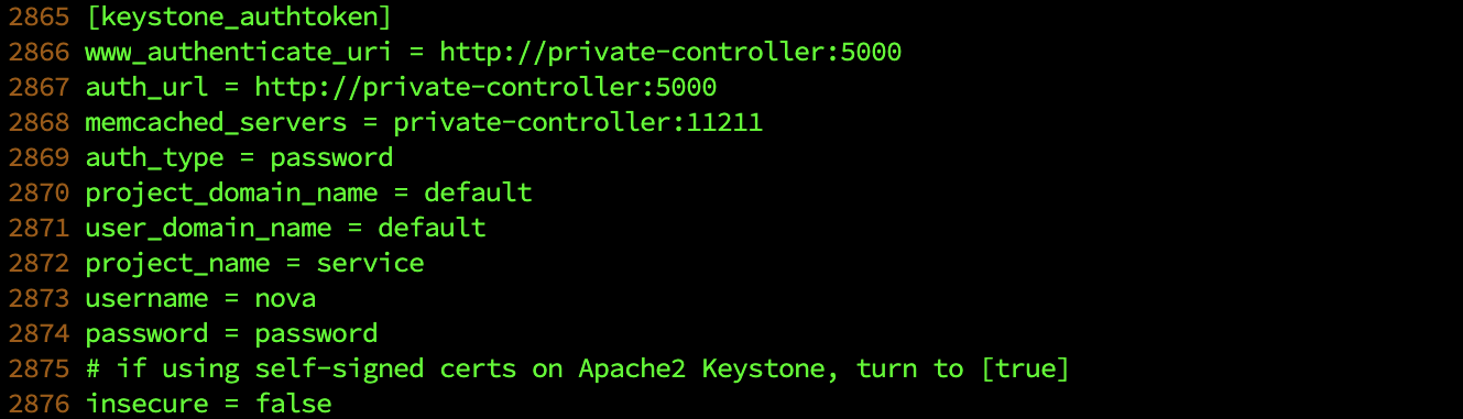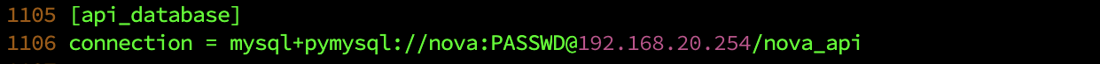 1106๋ฒ์งธ ์ค๊ณผ 1866๋ฒ์งธ ์ค์ PASSWD ํน์ NOVA_DBPASS๋ ๊ฐ๊ฐ์ ๊ณ์ ์ ๋น๋ฐ๋ฒํธ๋ฅผ ๋ฃ์ด์ฃผ์ด์ผ ํด์.