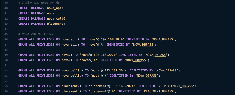 ์ฐธ๊ณ ๋ก NOVA_DBPASS์๋ ํด๋น DB ๊ณ์ ์ ๋น๋ฐ๋ฒํธ๋ฅผ ๋ฃ์ด์ฃผ๋ฉด ๋ผ์.