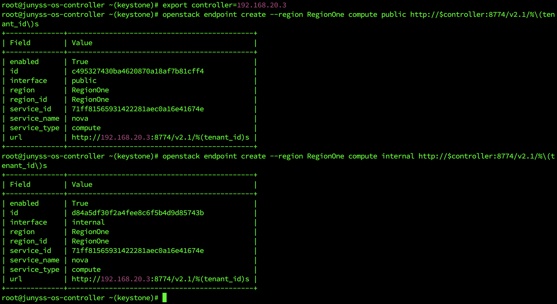 openstack endpoint create --region RegionOne compute public http://$controller:8774/v2.1/%\(tenant_id\)s