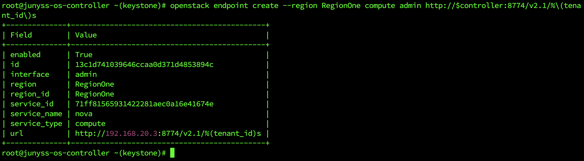 openstack endpoint create --region RegionOne compute internal http://$controller:8774/v2.1/%\(tenant_id\)s