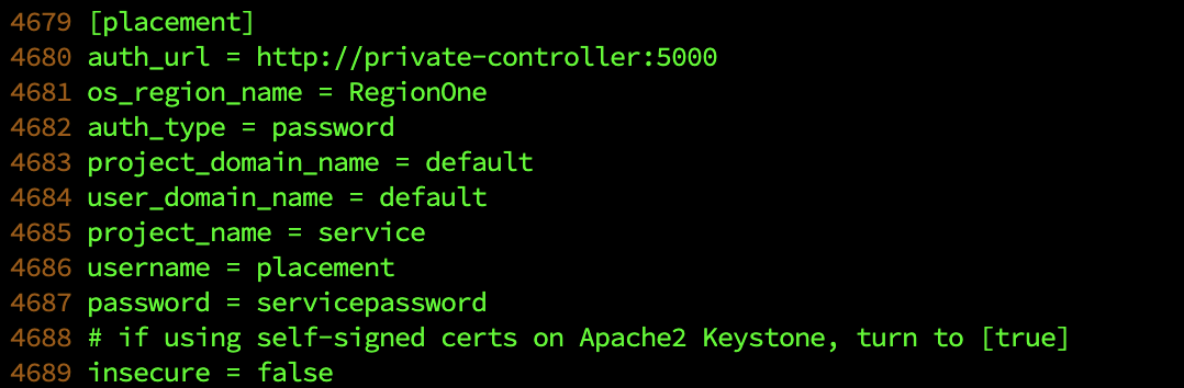 4687๋ฒ์งธ ์ค์ servicepassword์๋ placement ๊ณ์ ์ ๋น๋ฐ๋ฒํธ๋ฅผ ์